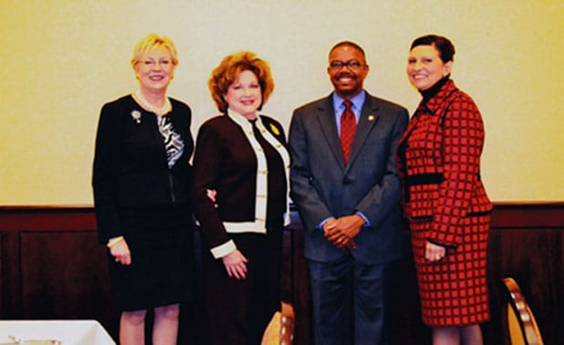 This photo of Taft McKinstry at the University of Kentucky Women's Law Caucus features two University of Kentucky Board of Trustee members: Pam May (on the left), a 1978 graduate, and Jo Hern Curris (on the right), a 1975 graduate. In the photo below, the ladies are standing with the University of Kentucky's Dean of its College of Law, David A. Brennan.