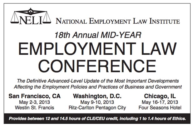 Matt Ellison recently attended the National Employment Law Institute's "Mid-Year Employment Law Conference" in Chicago, Illinois. The NELI conference featured speakers from across the country on recent developments on federal employment law matters, including the ADA, FLSA and the FMLA, as well as ethical issues concerning representation of employers and the impact of social media on the hiring, retention and firing process. The seminar also featured an interactive luncheon with other employment law specialists, attorneys, and human resources managers.